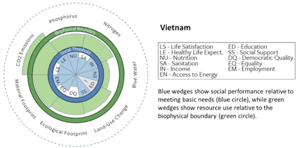Vietnam ha estado más cerca de equilibrar la sostenibilidad con una buena vida, pero aún se queda corto en algunas áreas. O’Neill et al,
