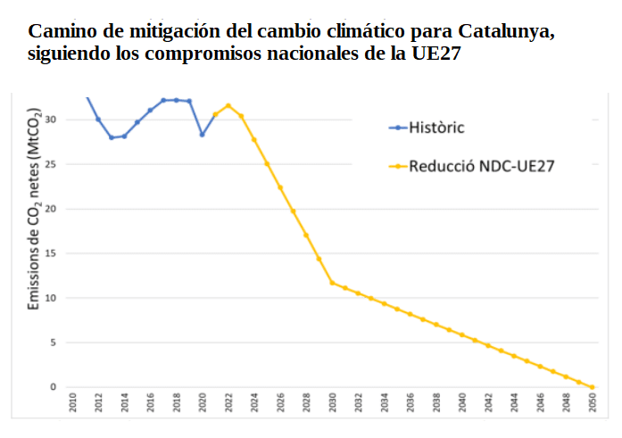 Fig. 1. Según el presupuesto de carbono de Catalunya, en 2030 deberíamos haber reducido las emisiones de CO2 un 55% respecto a 1990.