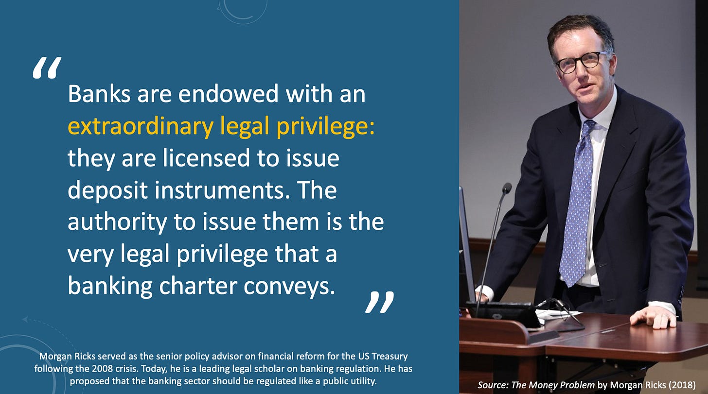 Por qué es importante que los bancos creen dinero utilizando privilegios legales: