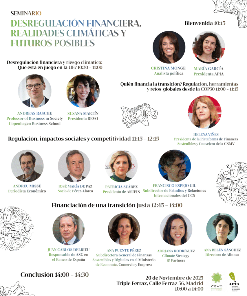 Esta confrontación —entre la simplificación normativa y la urgencia climática— tiene enormes implicaciones económicas, sociales y geopolíticas, pero apenas llega al debate público. Este seminario busca traducir ese lenguaje técnico al lenguaje de la vida cotidiana y ofrecer a periodistas económicos y ambientales las claves para comprender y cubrir un tema que seguirá marcando la agenda informativa en los próximos años.