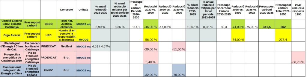 Ens cal tenir un full de ruta de reducció d’emissions coherent amb el pressupost de carboni de Catalunya. Això es tradueix en definir el límit d’emissions de cada sector econòmic per tal que la suma de tots els sectors no superi aquest pressupost de carboni.